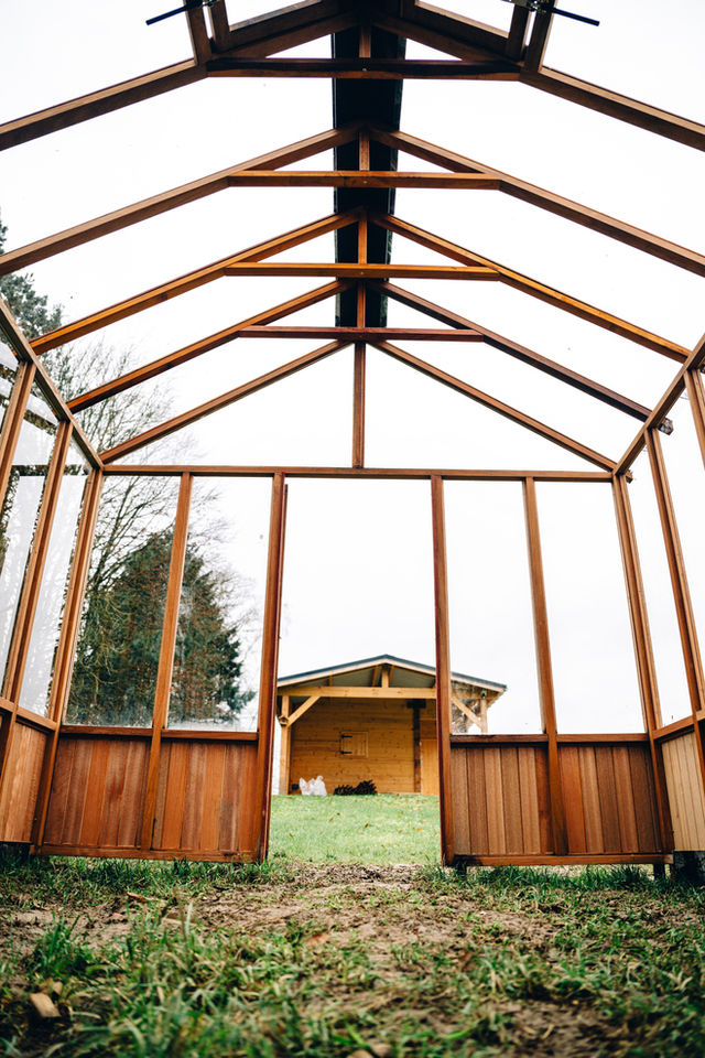 Depuis quelques années, nous nous distinguons également dans la fabrication de serres en bois de tailles standard et de bardages de hangar.